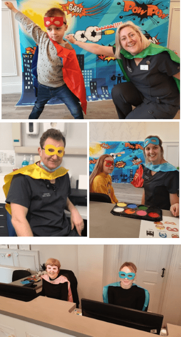 “It was wonderful to see anxious children who have been unable to complete examinations in the past, willing to sit quietly for a super-hero dentist” says Toni Batty, Practice Manager. “It was also lovely to see so many of our team entering into the spirit of things, from masks and capes, to full-on face paint! Particular thanks go to Gemma our Dental Therapist who organised the face painting and games, Kim, for the excellent oral health advice, and our Hygienist Sabina who helped to organise the day.”